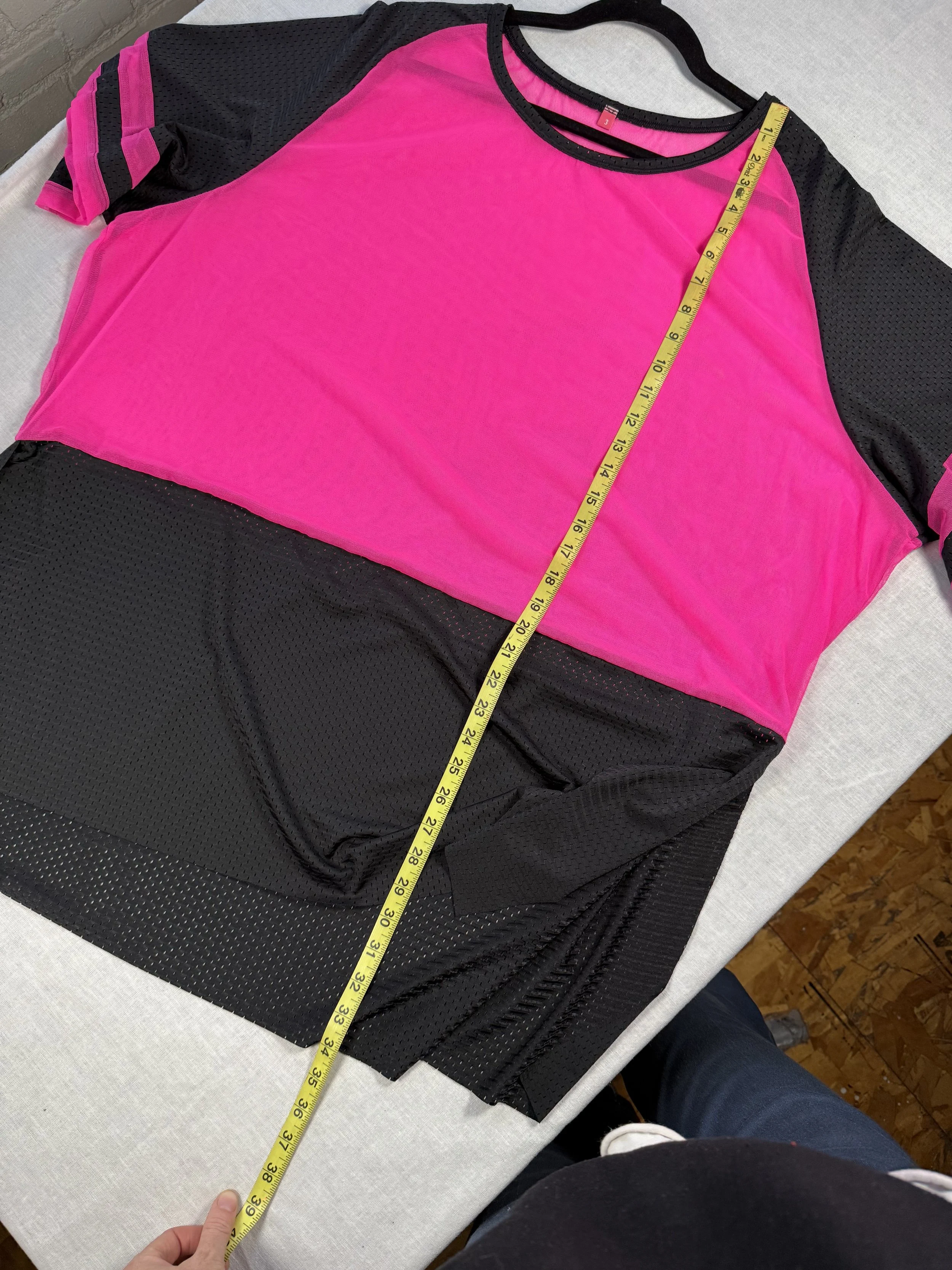 3XL- 29.5" across body FLAT, 20.5" sleeve hem before stretch.