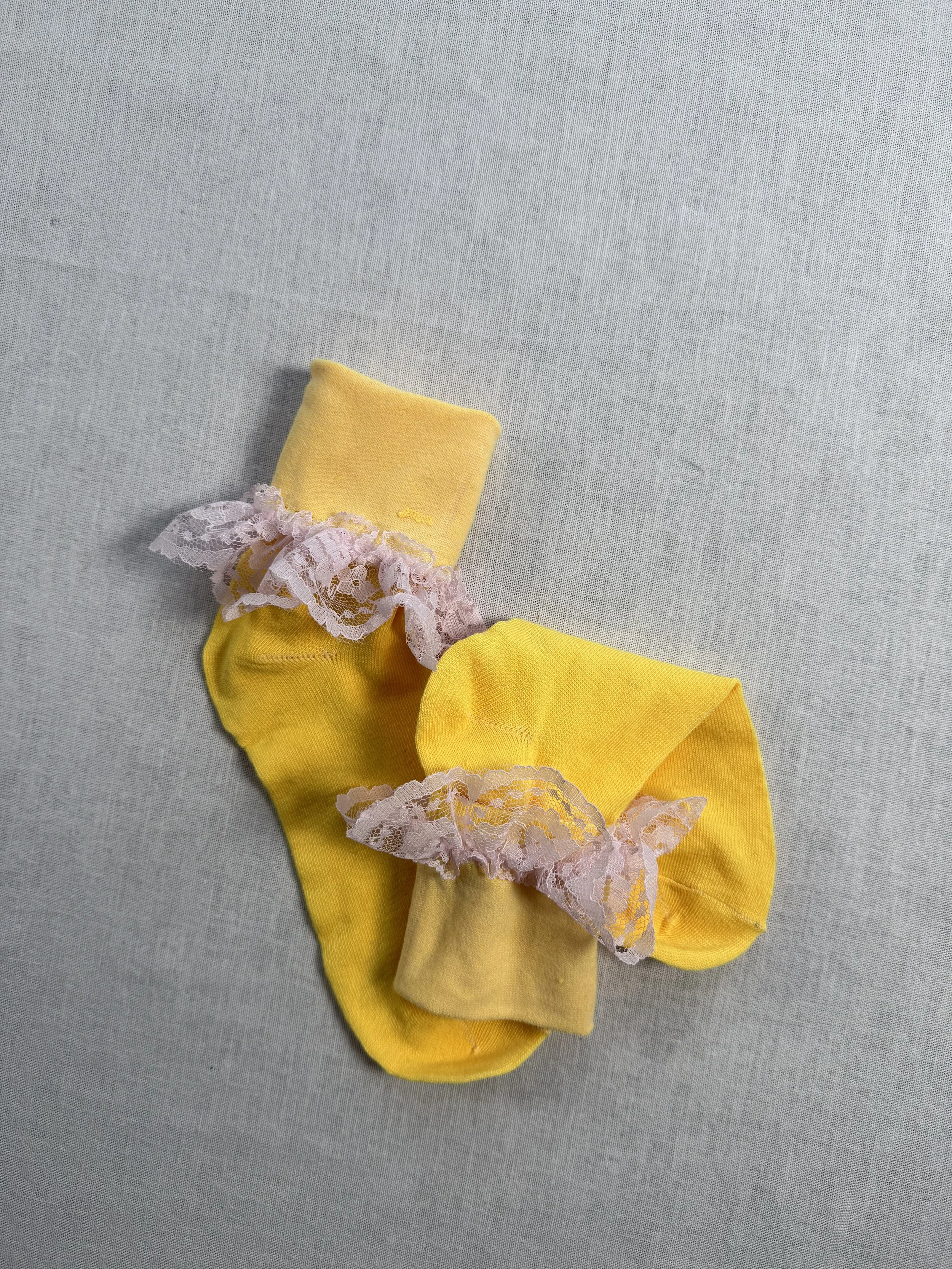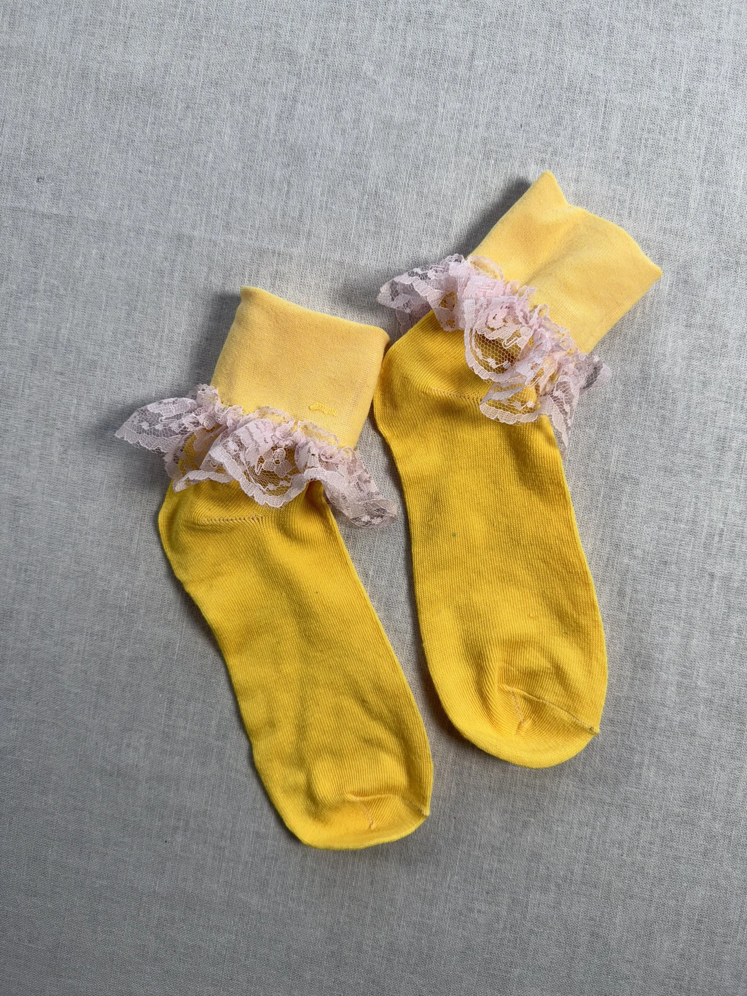 Lightweight and stretchy Cotton blend socks with the cutest lace ruffles.