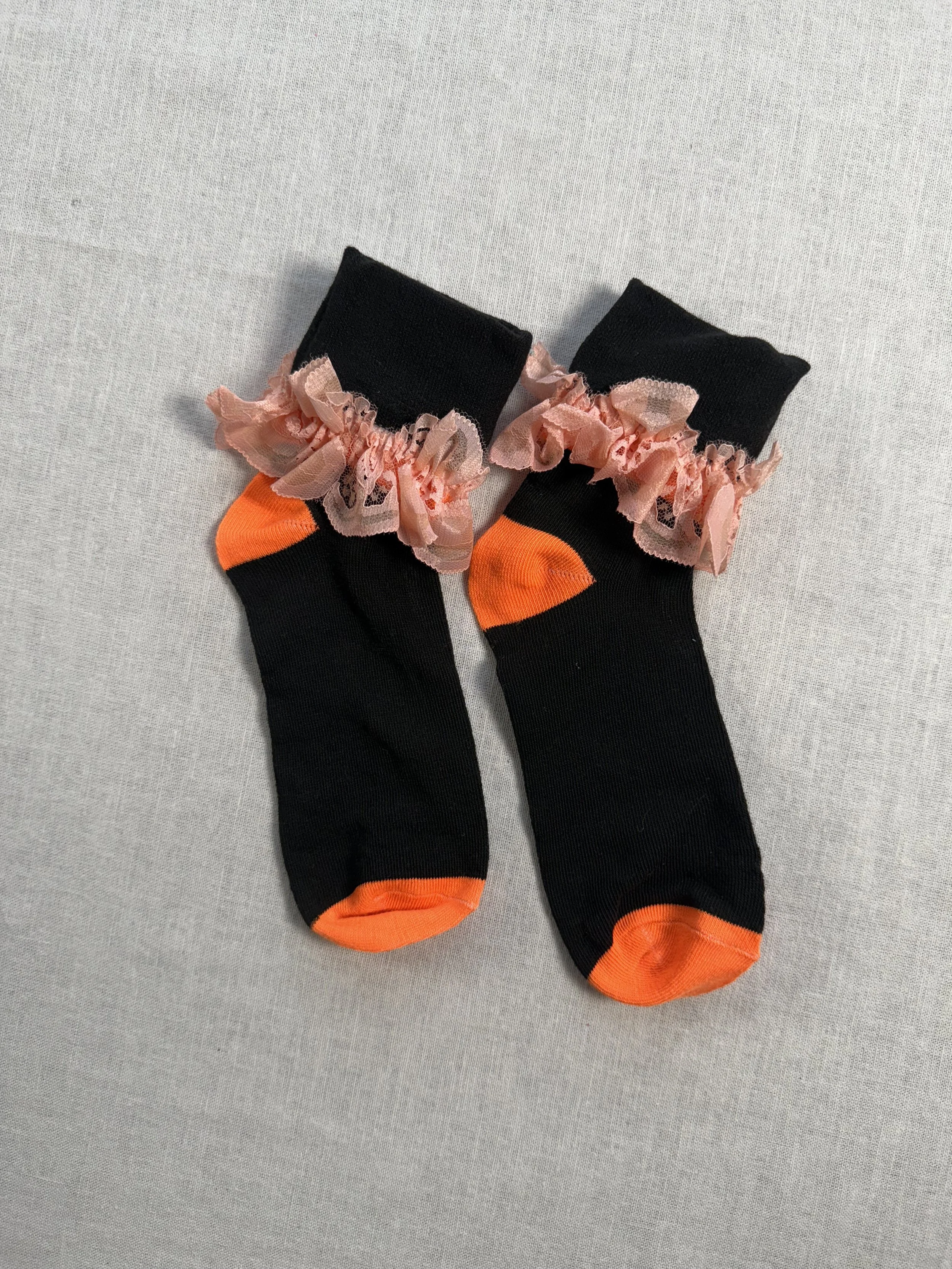 Lightweight and stretchy Cotton blend socks with the cutest lace ruffles.